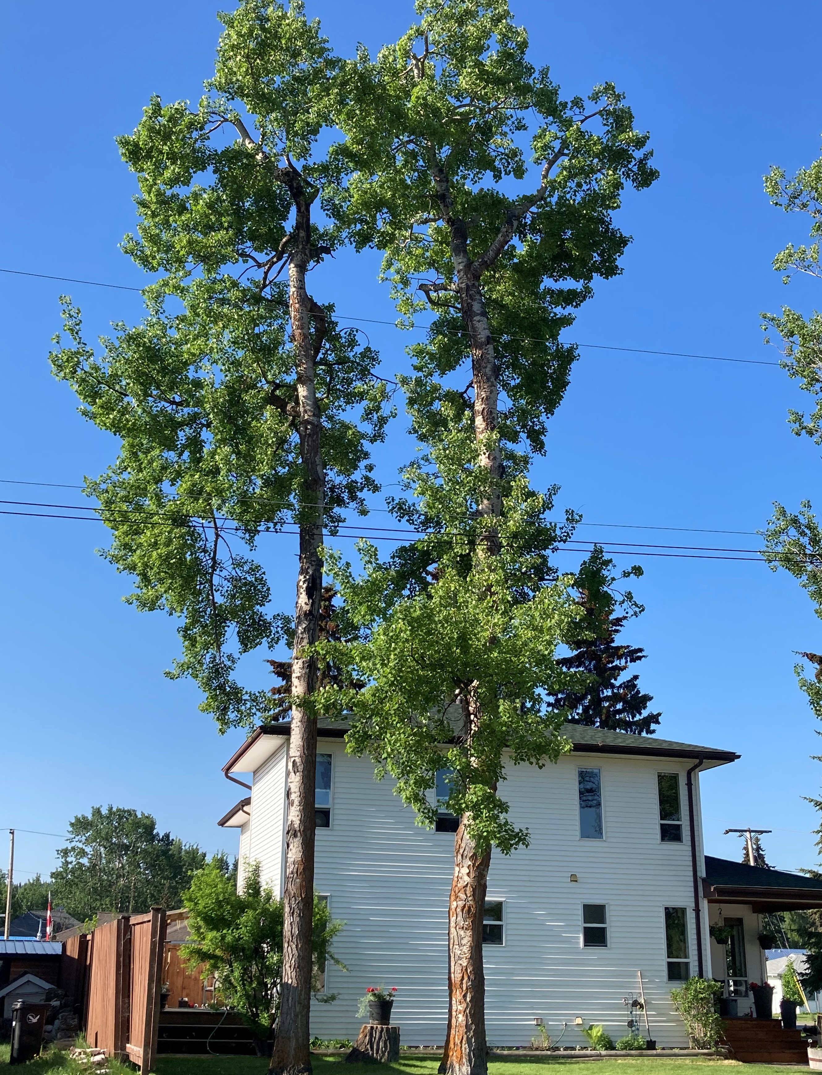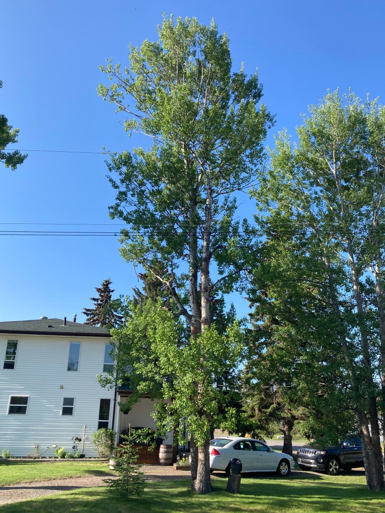 Crown reduction can often be a good method for encouraging new growth, especially for healthy and vigorous deciduous trees. Allan reduced the crowns on two poplar trees a couple of weeks ago, and they already look a lot better!